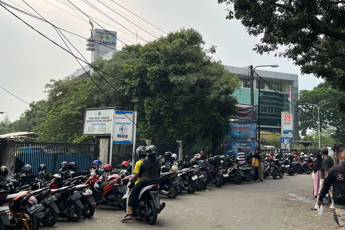 Iqbal, juru parkir di sekitar Kantor Samsat Kabupaten Bogor, mengatakan lonjakan wajib pajak terjadi sejak Selasa (8/5/2025).